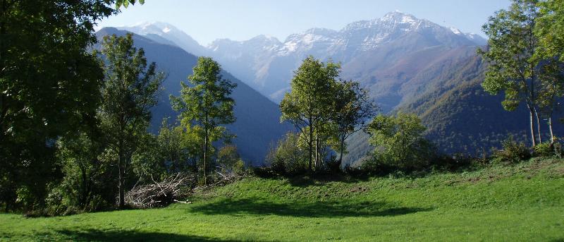 Sie genießen einen herrlichen Blick nach Süden über das Tal der Bellongue auf die Bergketten der Pyrenäen.